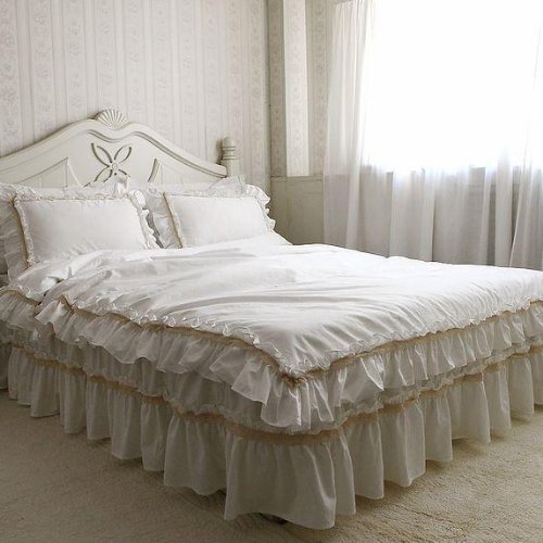 Shabby and elegant off-white lace/white ruffle Duvet cover 4pc Bedding Set -Queen size Review