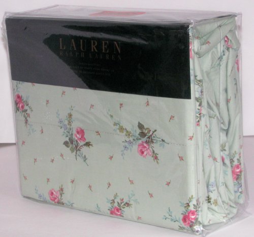 "Buy Lauren Ralph Lauren Queen Sheet Set Garden Floral Pink Roses on Green" Overview